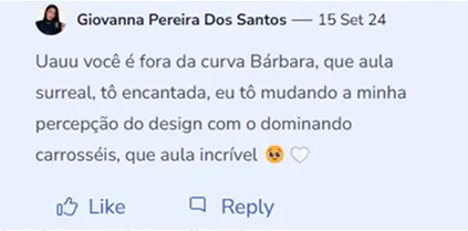 Criei o DC para ser uma comunidade de designers que conseguem vencer o bloqueio criativo e conseguem alcançar seus objetivos através do design. Nossos mais de 200 alunos estão se tornando mentes criativas a partir da nossa comunidade.